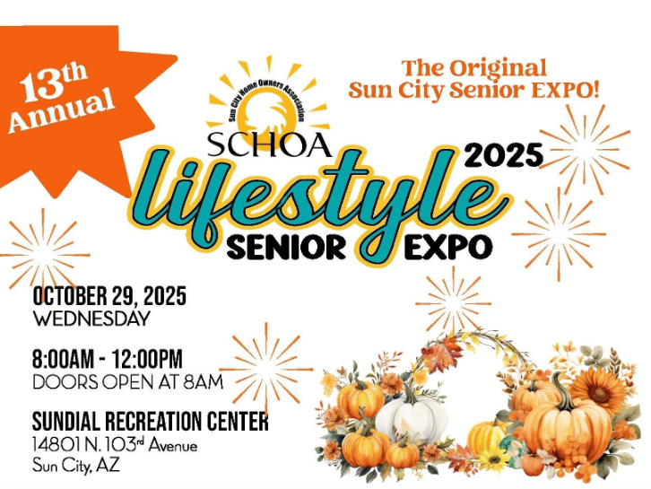 [Sun City] SCHOA 2025 Lifestyle Senior Expo, Wednesday, October 29th, from 8am-12pm at the Sundial recreation center (link)