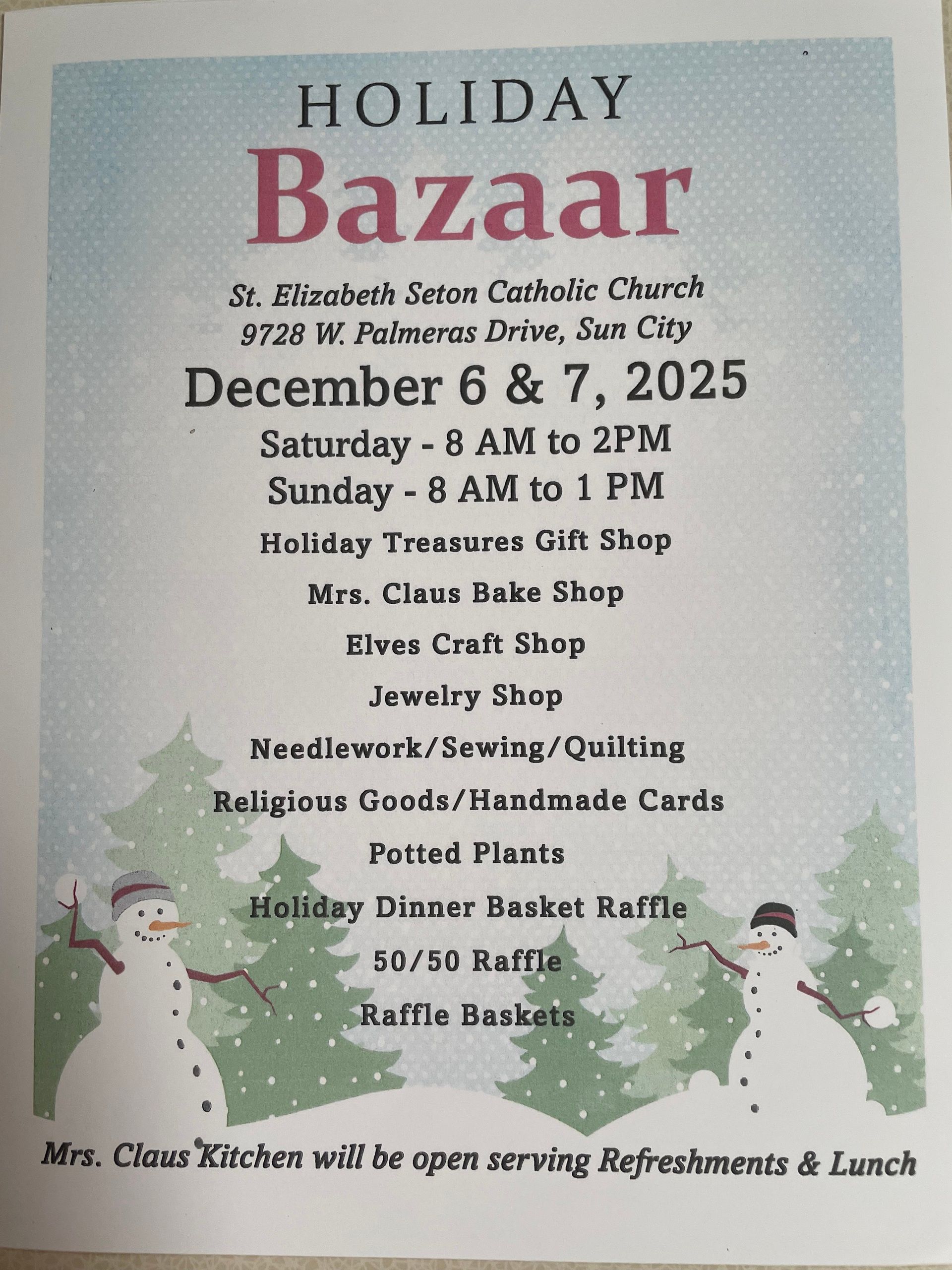 [Sun City] St. Elizabeth Seton Catholic Church is hosting their Holiday Bazaar on December 6th & 7th. (link & map)