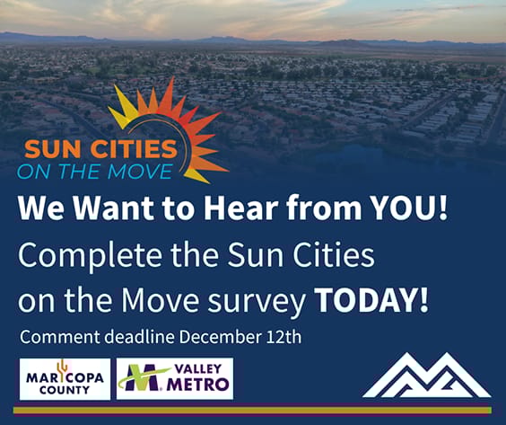 The Sun Cities on the Move project is sponsored by the Maricopa Association of Governments, a regional agency that plans and studies transportation, and conducted in partnership with transit authority Valley Metro and with Maricopa County.