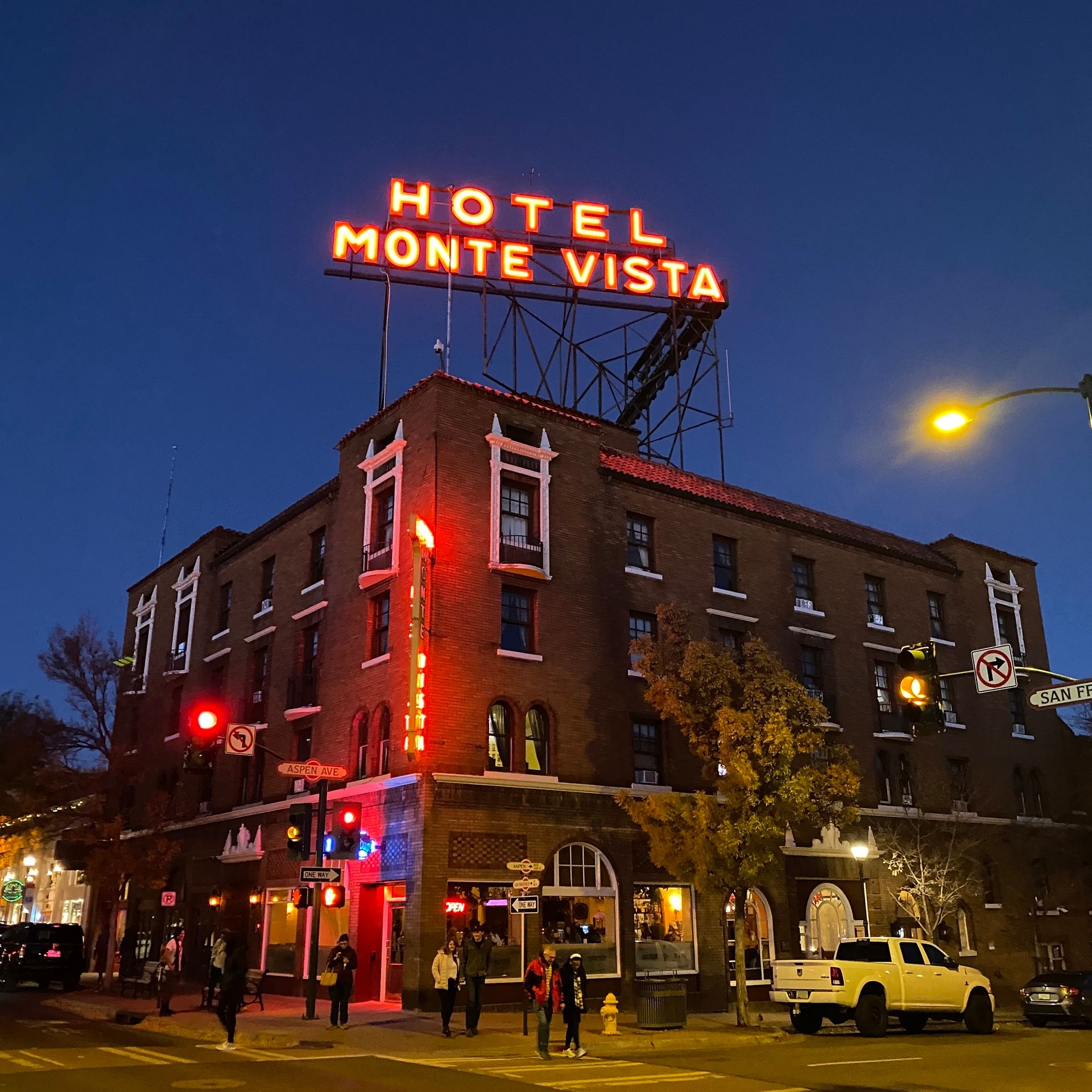 Legend has it that a bellboy who died in the 1950s still roams the hallways, knocking on doors and announcing “room service” to startled guests, even when no one’s there. The historic Monte Vista, built in 1927, has long been considered one of Northern Arizona’s most haunted hotels, with stories ranging from phantom bartenders to ghostly dancers in the cocktail lounge.